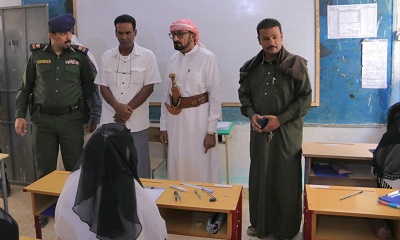 وفي السياق ذاته أوضح مدير إدارة التربية والتعليم بالمديرية "بن كده" أن الامتحانات تسير وفق الخطط المعدة لها والتنسيق المستمر مع المدارس لمتابعة مجريات الامتحانات بشكل يومي لضمان الانضباط وسير العملية الإمتحانية بسلاسة وتحقيق نتائج مشرَّفة .