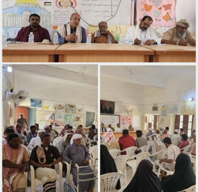 بحضور الشيخ محمد عوض بن السعد التميمي عضو المجلس المحلي بالمحافظة والاستاذ سالم صالح باحميد عضو الهيئة الإدارية للمجلس المحلي بالمديرية مدير مكتب الشؤون الاجتماعية والعمل والاستاذ سالم علي التميمي مدير إدارة التربية والتعليم بالمديرية الأسبق .