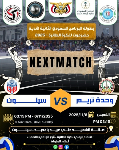 وحدة تريم بطل تصفيات اندية الوادي والصحراء في النسخة الأولى وأكثر الفريق جاهزية سيدخل اللقاء تحت قيادة المدرب كرامة صبيح بدون شك لأجل الفوز وخاصة أن فريق وحدة تريم يشهد تطور في السنوات الأخيرة يعد من الفرق المرشحة للبطولة وخاصة أن يمتلك مجموعة من اللاعبين الشباب ، وفي الجهة الأخير سيكون سيئون هذه المرة تحت قيادة المدرب على عبود شمراخ خليط ما بين الشباب والخبرة وسيئون الذي تعودت جماهيرية على تحقيق الانتصارات والإنجازات سيكون للجمهور دور كبير في موازرة الفريق خلال المواجهة الأولى في افتتاح البطولة .. وكان فرع الاتحاد اليمني للكرة الطائرة حضرموت الوادي والصحراء قد سلم الفرق المشاركة في البطولة الزي الرسمي مع عدد من الكرت وستكون صالة الشهيد علي بامعبد ستكون مسرحاً لانطلاقة البطولة الثانية للبرنامج السعودي وسط توقع حضور جماهيري كبير نظير ما تمتع به اللعبة من شعبية كبير في أندية حضرموت الوادي والصحراء منذُ سنوات طويلة ..