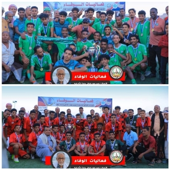 وشهدت المنصة شرف حضور عدد من القيادات والشخصيات البارزة، يتقدمهم الأستاذ عبدالهادي التميمي الوكيل المساعد لشؤون الوادي، والأستاذ عبدالكريم بابطاط مدير عام مديرية تريم، والدكتور مجدي سليمان بن طليب مدير عام مكتب الشباب والرياضة، ورئيس نادي الوحدة الأستاذ عمر باشعيوث ورئيس نادي البرق بتريم مسعد قريطاس العامري إلى جانب نخبة من المسؤولين، ورؤساء الأندية، والشخصيات الرياضية، والجيل الذهبي الذي عاصر الفقيد. واحتضن ملعب نادي البرق بتريم المواجهة النهائية التي جمعت بين نادي الوحدة الرياضي بتريم ونادي المكلا، في أجواء جماهيرية رائعة اكتظت بها المدرجات، لتضفي على النهائي طابعًا استثنائيًا يليق بحجم الحدث. *تفاصيل المباراة* : انطغلقت صافرة الحكم الدولي محمد باصالح معلنة بداية كرنفال كروي ممتع، حيث تبادل الفريقان الهجمات منذ الدقائق الأولى، وسط حضور فني لافت من نجوم الناديين وتمكن نادي المكلا من إفتتاح التسجيل مبكرًا عند الدقيقة 15 عبر المتألق محمد باخريش برأسية جميلة إثر كرة عرضية متقنة. واصل المكلا ضغطه، ليعزز تقدمه عند الدقيقة 35 من ركلة جزاء نفذها بنجاح حسن باسفر، قبل أن يعود الوحدة سريعًا ويقلص الفارق في الدقيقة 40 بواسطة حسين بارفيد بتسديدة قوية من داخل المنطقة ولم تمضِ سوى دقائق حتى عاد المكلا ليؤكد تفوقه بهدف ثالث عند الدقيقة 43 برأسية هاشم الخلاقي، لينتهي الشوط الأول بتقدم مستحق للمكلا (3-1). في الشوط الثاني، ظهر نادي الوحدة بصورة مغايرة، حيث فرض سيطرته على مجريات اللعب وقدم أداءً قويًا بحثًا عن العودة ونجح شاكر كرامة في تقليص الفارق عند الدقيقة 27 من ركلة حرة رائعة سكنت الزاوية التسعين، لتشتعل المباراة من جديد. وضغط الوحدة بكل قوة في الدقائق الأخيرة، وكاد أن يدرك التعادل في أكثر من مناسبة، أبرزها تسديدة مشعبي التي تصدى لها حارس المكلا ببراعة في الدقيقة 40، ليحافظ فريقه على التقدم حتى صافرة النهايةانتهت المواجهة بفوز نادي المكلا بنتيجة (3-2)، ليتوّج بطلاً لبطولة الوفاء، في حين خرج نادي الوحدة مرفوع الرأس بعد أداء بطولي ومباراة كبيرة أمتعت الجماهير حتى اللحظات الأخيرة. طاقم التحكيم: أدار اللقاء الحكم الدولي محمد باصالح، وساعده كل من مازن مرجان وعبدالله حمدون، فيما كان حمزة ربيع حكمًا رابعًا، وأنيس بلسعد إداريًا للمباراة، وداوؤد بن مهري مقيّمًا للحكام.